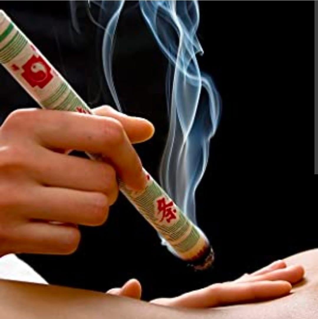Utilisation : Pour utiliser les bâtonnets, il suffit de les allumer et de les tenir à quelques centimètres du point d'acupuncture à traiter ou de la zone à réchauffer. Il est possible de laisser le cigare au-dessus de la peau sans bouger ou le déplacer légèrement jusqu'à ce que la personne ressente une agréable chaleur.